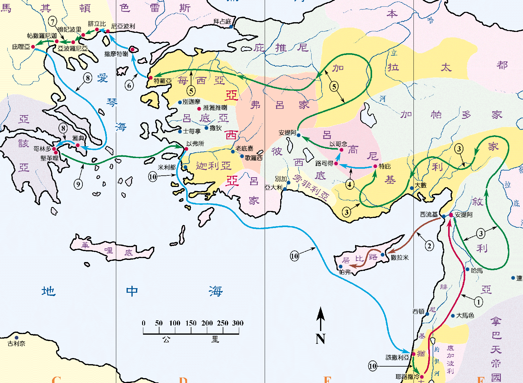 “到了以弗所,保罗就把他们留在那里,自己进了会堂,和犹太人辩论。众人请他多住些日子,他却不允,就辞别他们,说:‘上帝若许我,我还要回到你们这里。’于是开船离了以弗所。”-- 以弗所在哪里?请看图一。这是罗马亚细亚省(Asia)的省会,也是当代的第三大城,城内有很多犹太人,是宣教的要塞。(下一课再介绍)保罗在以弗所只是停留短暂的时间,他似乎要赶着回耶路撒冷,可能是过逾越节(53年3月22日)。相信他已经计划好,在下一次传道旅程会来以弗所建立宣教的基地。百基拉、亚居拉留在以弗所,直到 55年尾(林前十六:19),但在56年,他们回去罗马(罗十六:3)。我们在下一课还会见到他们。
